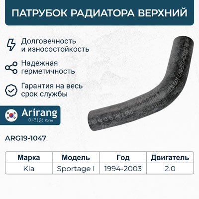 ARG19-1047 ARIRANG Kia Sportage 97-05 2.0DOHC б Патрубок радиатора верхн
