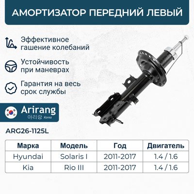 ARG26-1125L ARIRANG Hyundai Solaris/Rio 11- Амортизатор передн лев