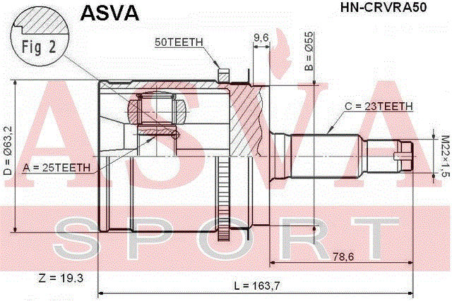 HN-CRVRA50 ASVA Honda CR-V 96-02, Odyssey RA7 шрус наружный задний