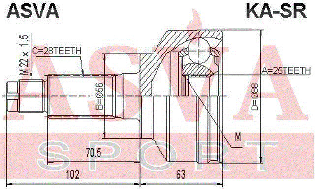 KA-SR ASVA Kia Sorento 02 ШРУС наружный