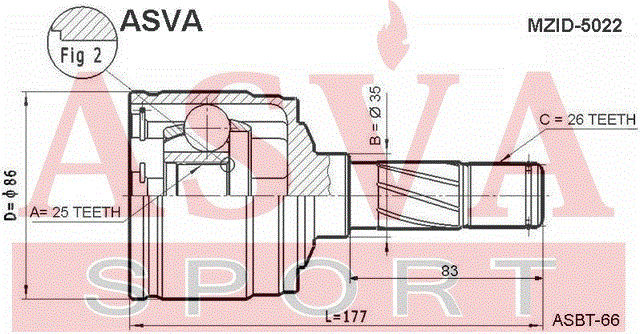 MZID-5022 ASVA Kia Sportage 94 шрус внутренний правый
