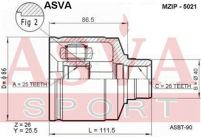 MZIP-5021 ASVA Kia Sportage 94 шрус внутренний левый