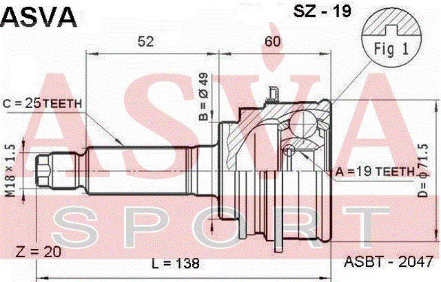 SZ-19 ASVA ШРУС НАРУЖНЫЙ 19X49X25