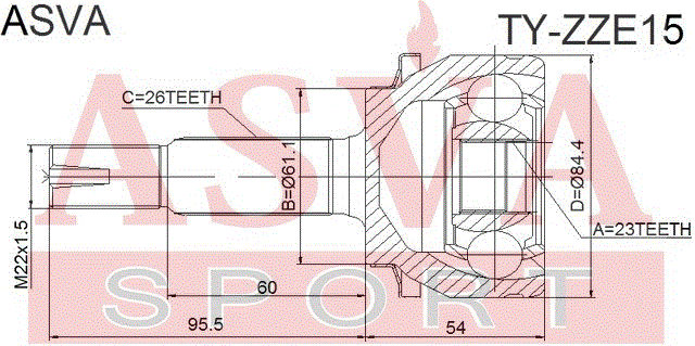 TY-ZZE15 ASVA Toyota Corolla/Auris 07- ШРУС наружный 23x61x26