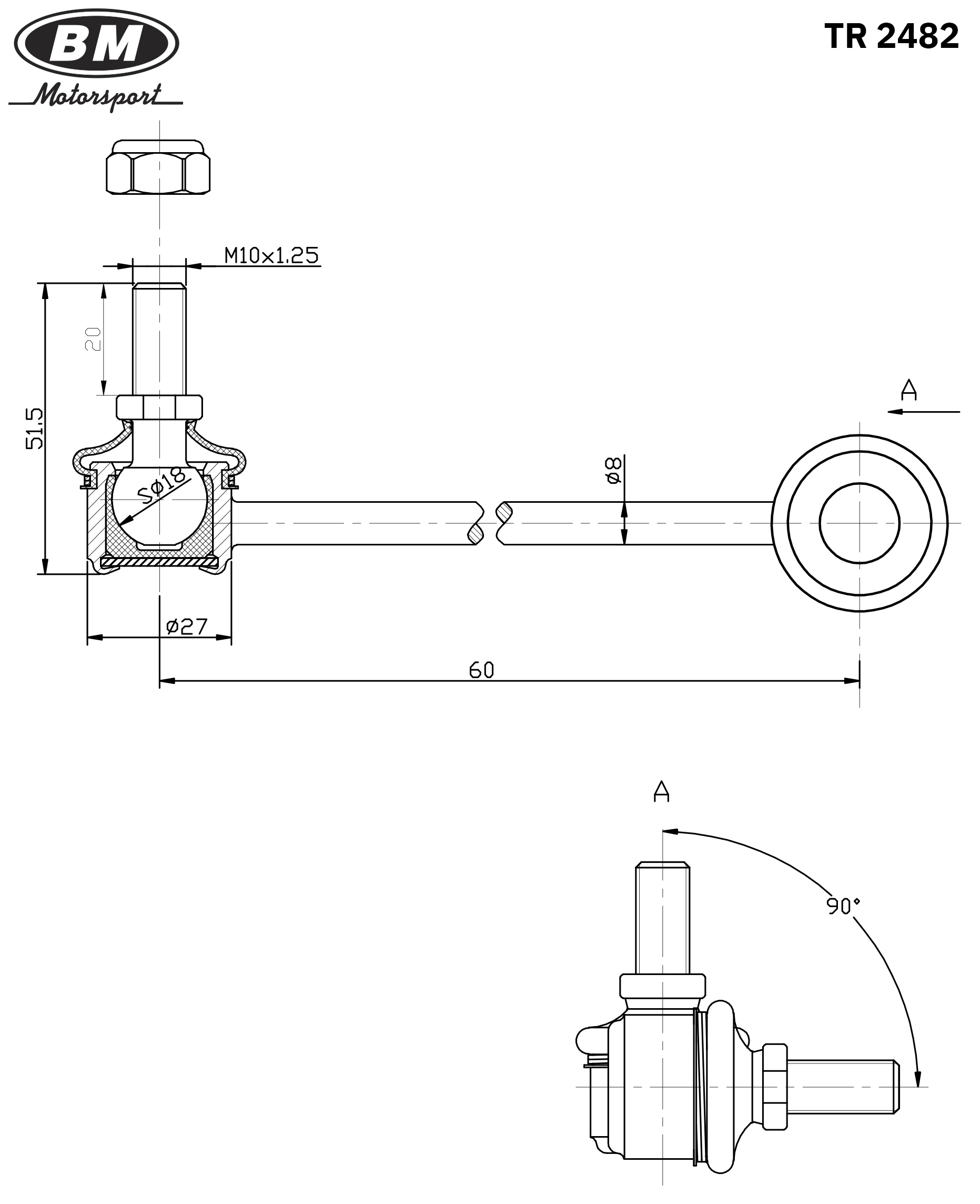 TR2482 BM MOTORSPORT Стойка стабилизатора переднего, правая