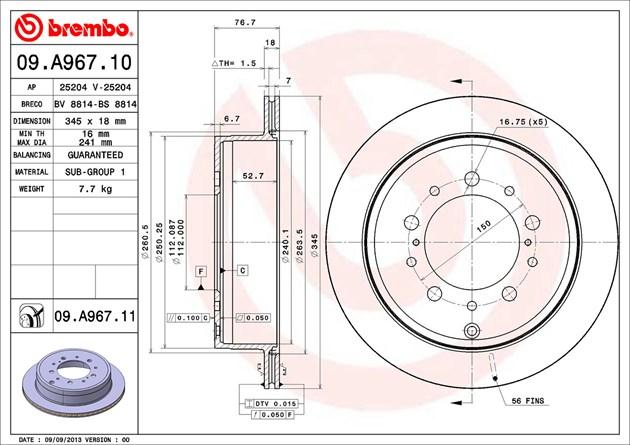 09.A967.10 BREMBO Toyota LC 200 08- диск тормозной задний
