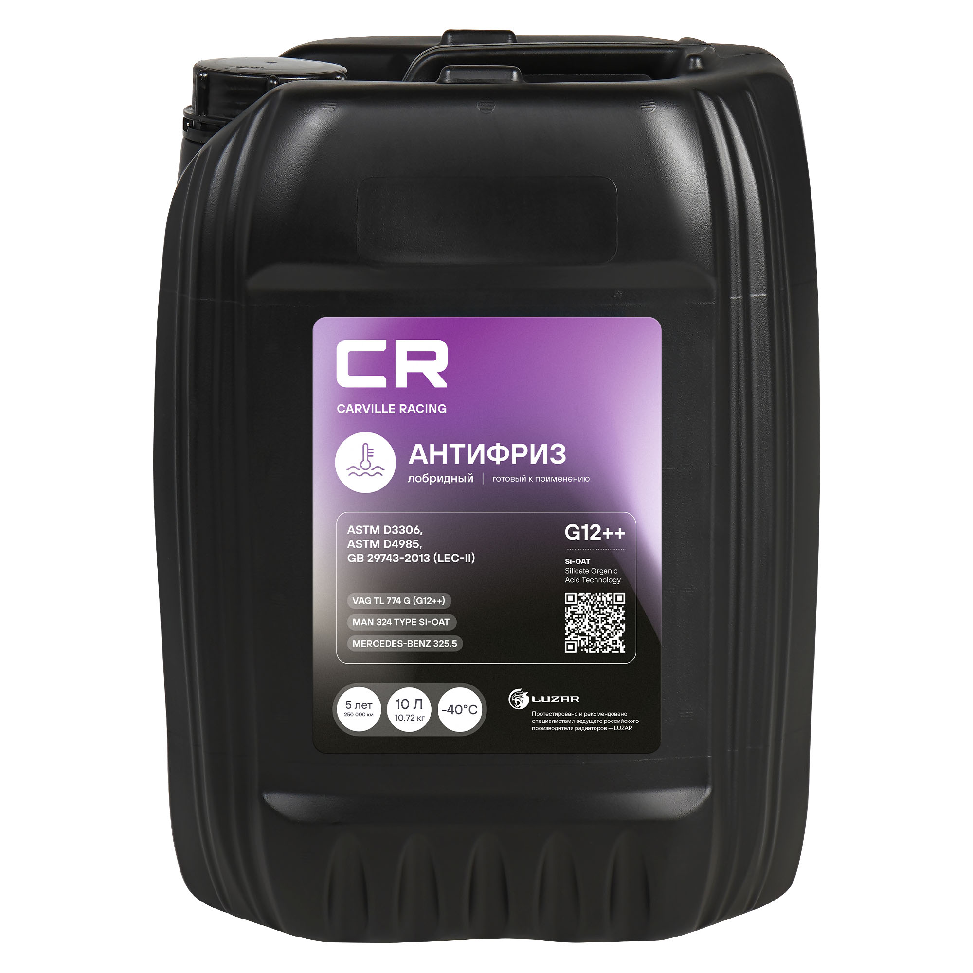 L2018003 CARVILLE RACING АНТИФРИЗ CR лобридный универсал флуор. -40°С, G12++, фиолет, готовый, 10л (1)