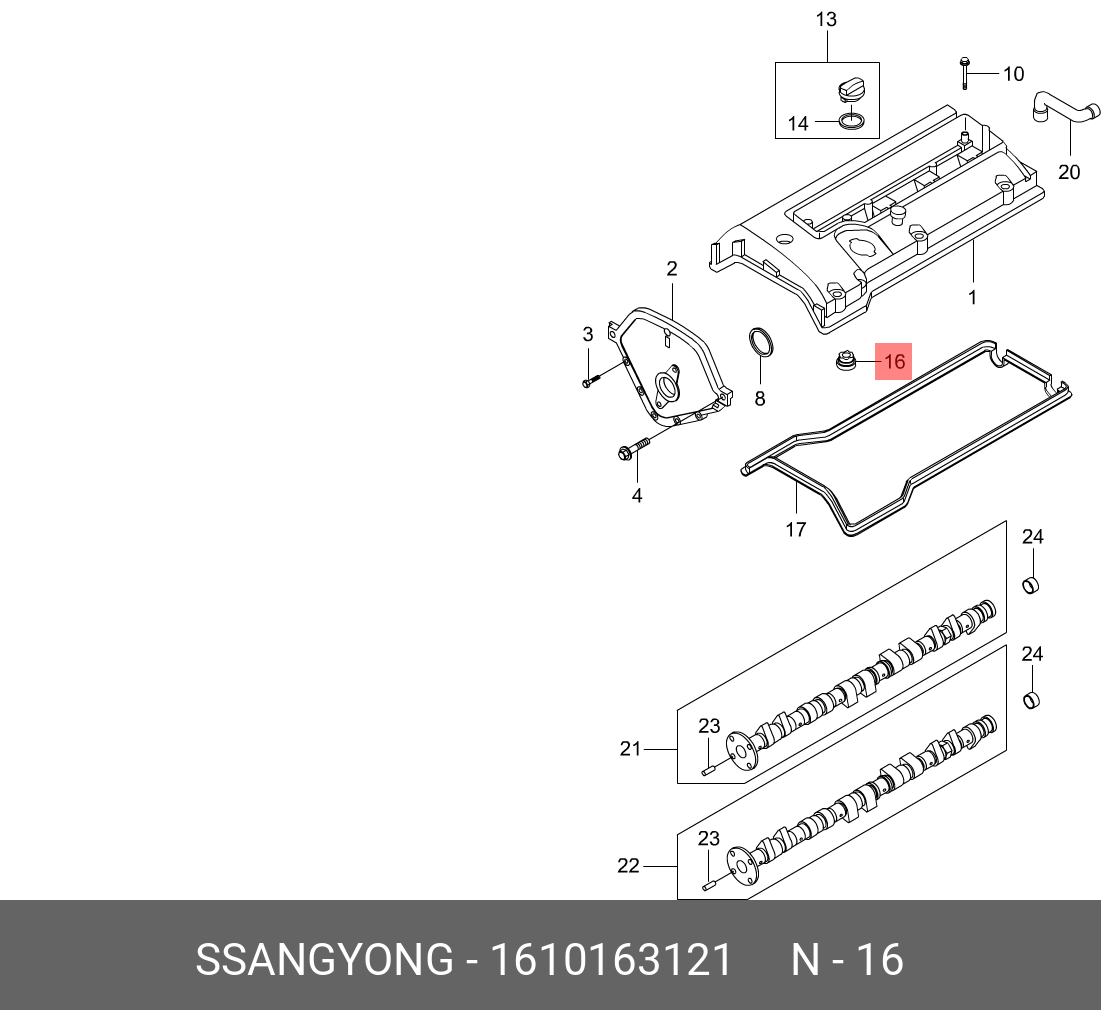 1610163121 SSANG YONG SS 2.3 прокладка свечного колодца