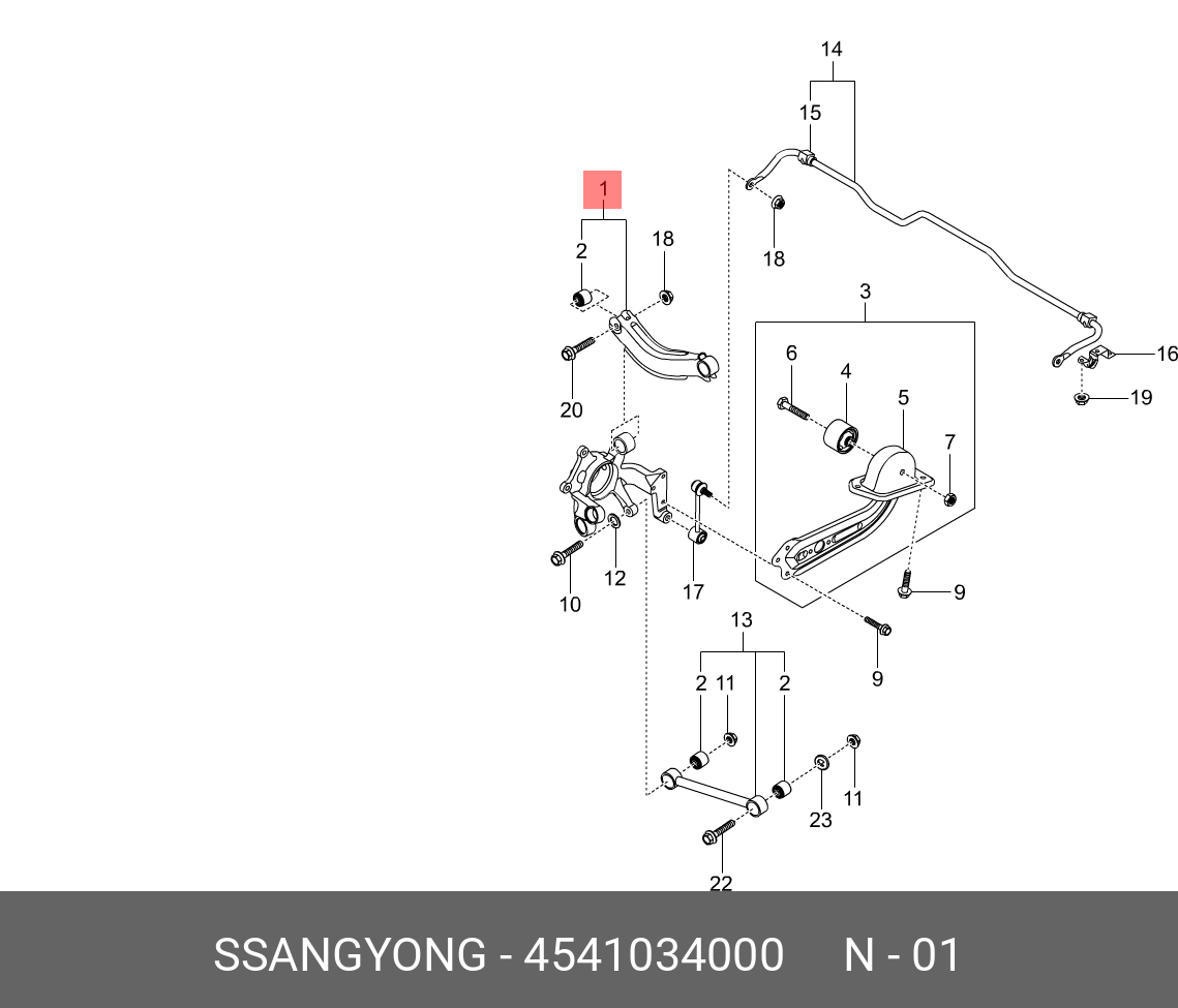 4541034000 SSANG YONG SS Actyon 11- Рычаг задний верхний серп левый