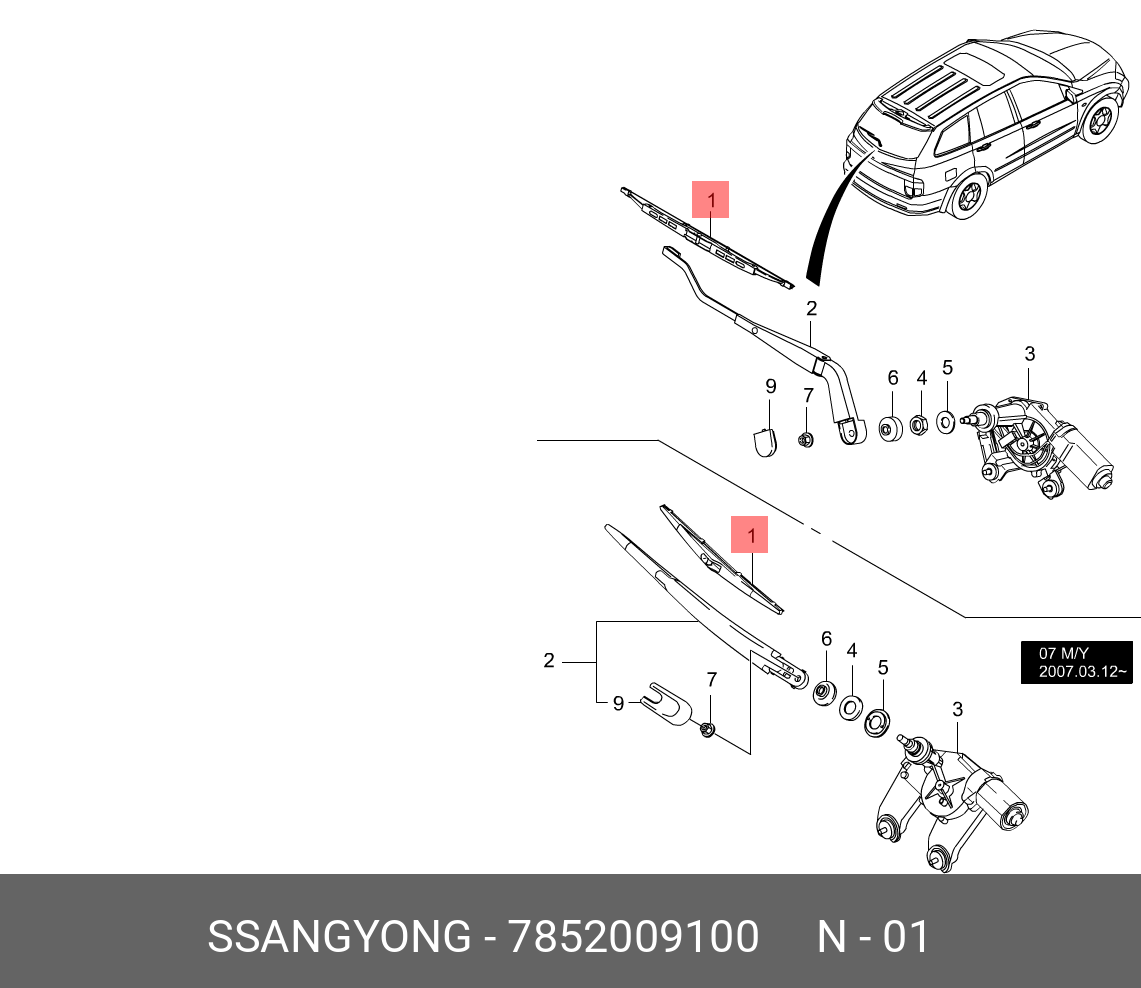 7852009100 SSANG YONG 300мм Щетка стеклоочистителя заднего SS Kyron 07- щетка стеклоочистителя задняя