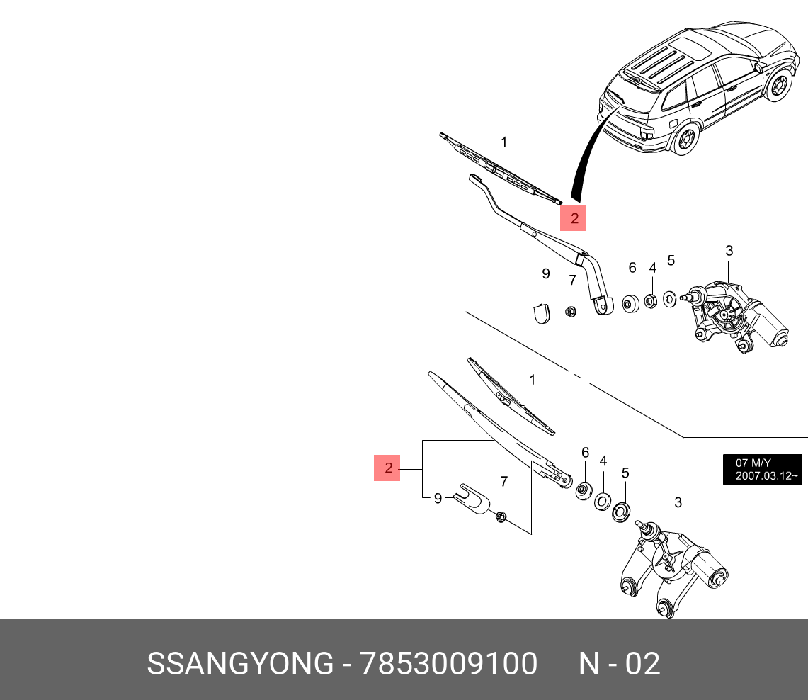 7853009100 SSANG YONG SSANGYONG Kyron (07-) поводок стеклоочистителя 5-ой двери
