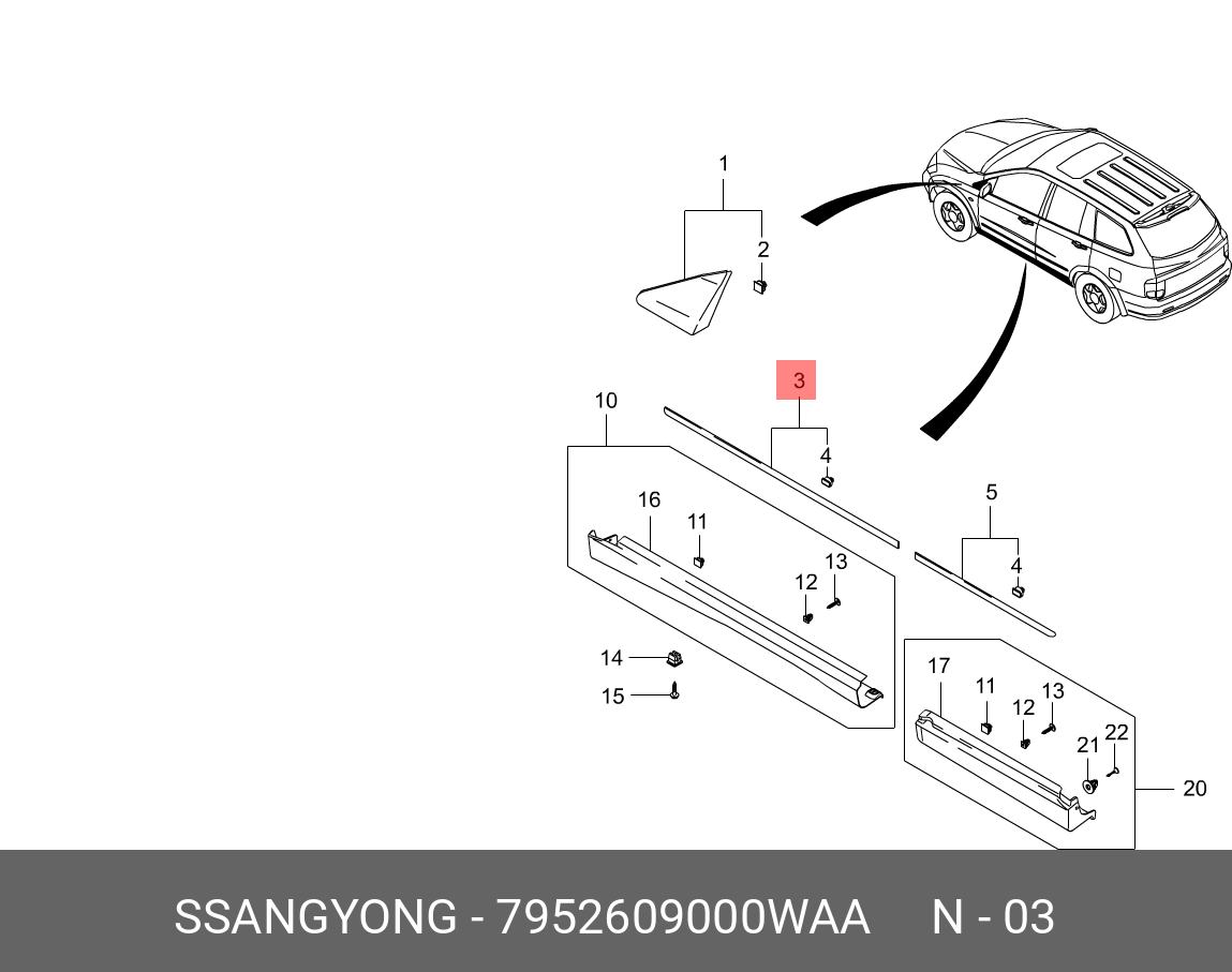 7952609000WAA SSANG YONG SS Kyron Молдин передней правой двери (белый)