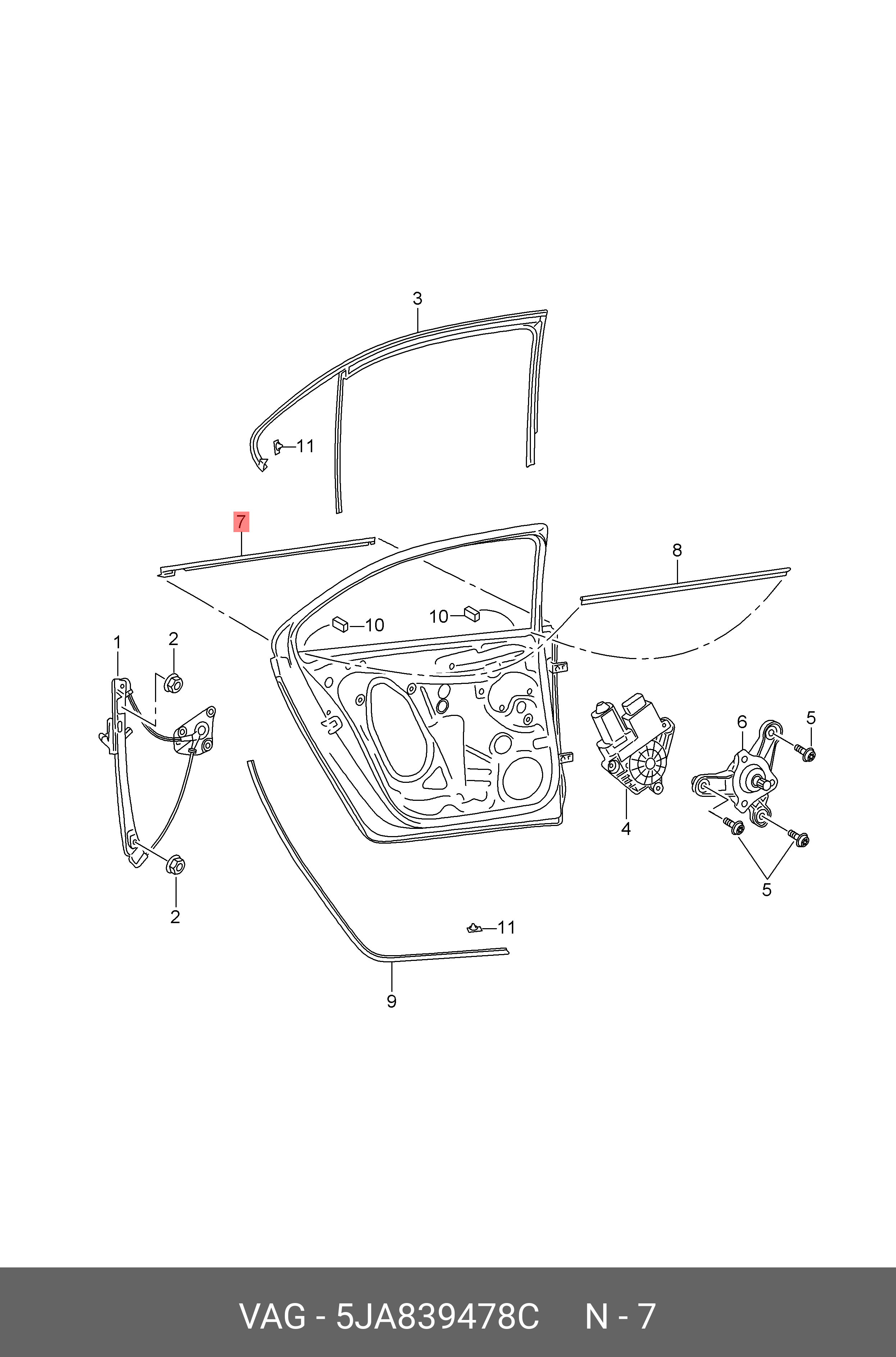 5JA 839 478 C VAG Skoda Rapid уплотнитель стекла задней правой двери наружный оригинал