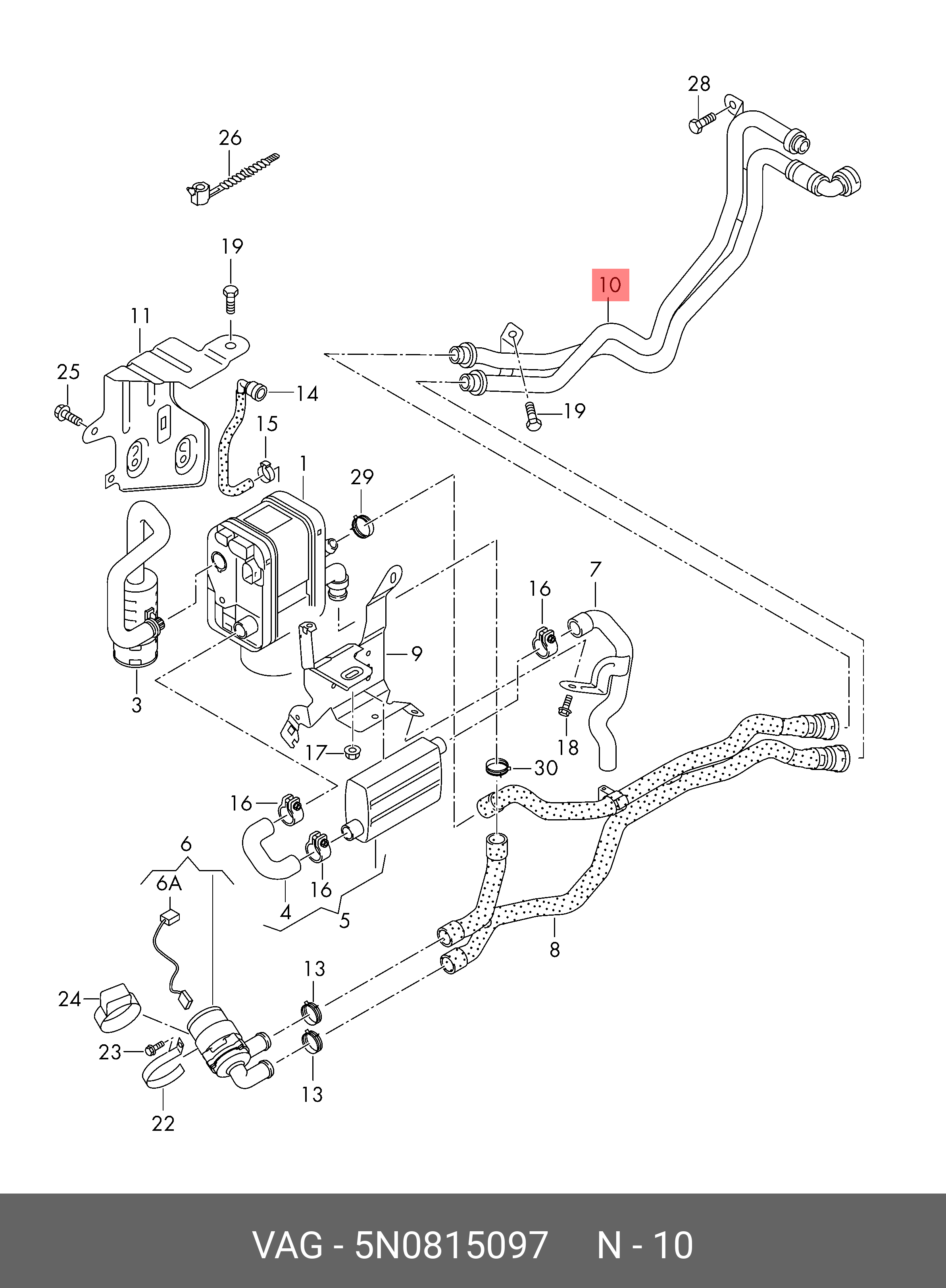5N0 815 097 VAG Патрубок отопителя VAG