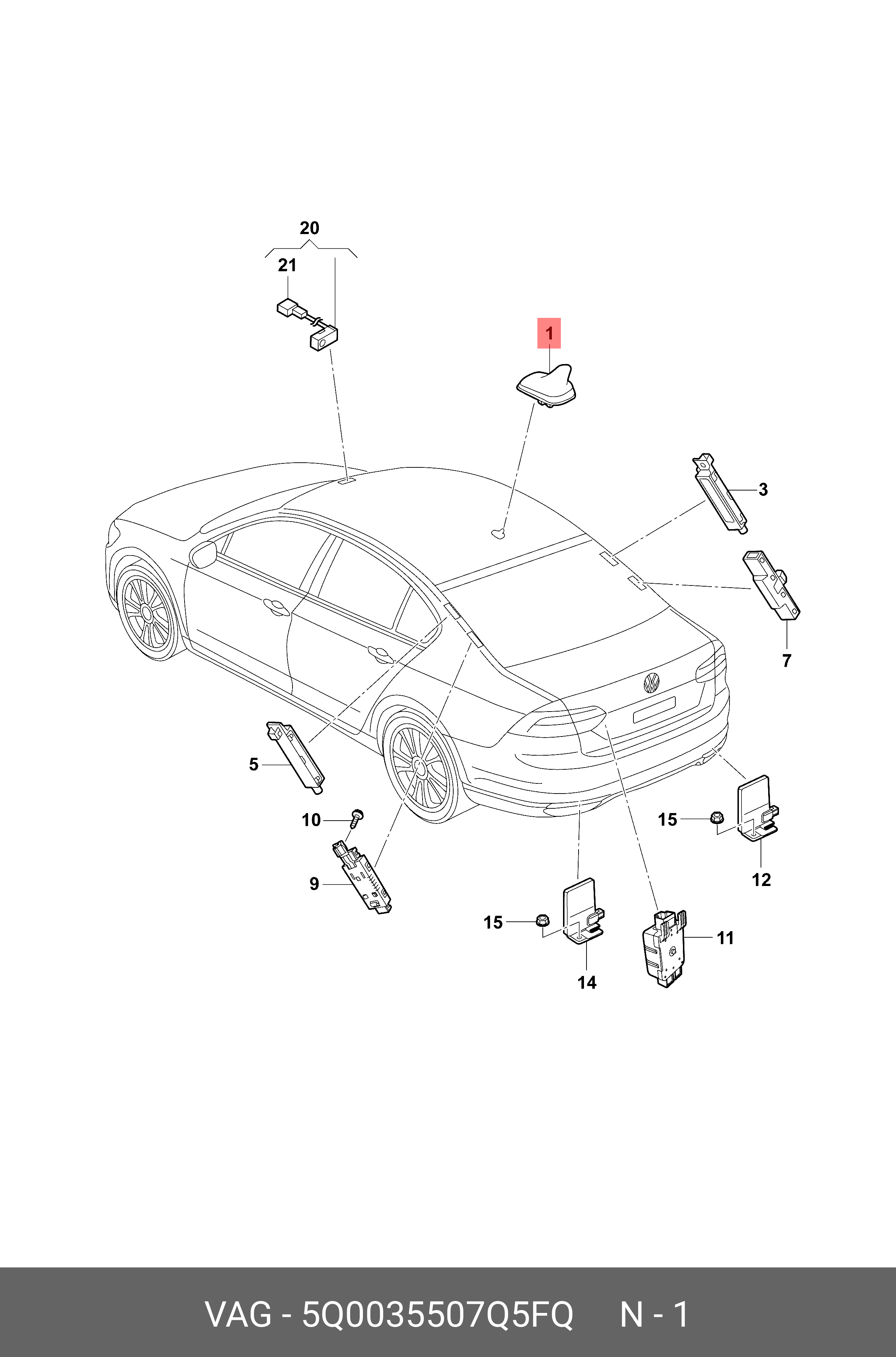 5Q0 035 507 Q 5FQ VAG Антенна, комбиниров. для крыши черный-бл