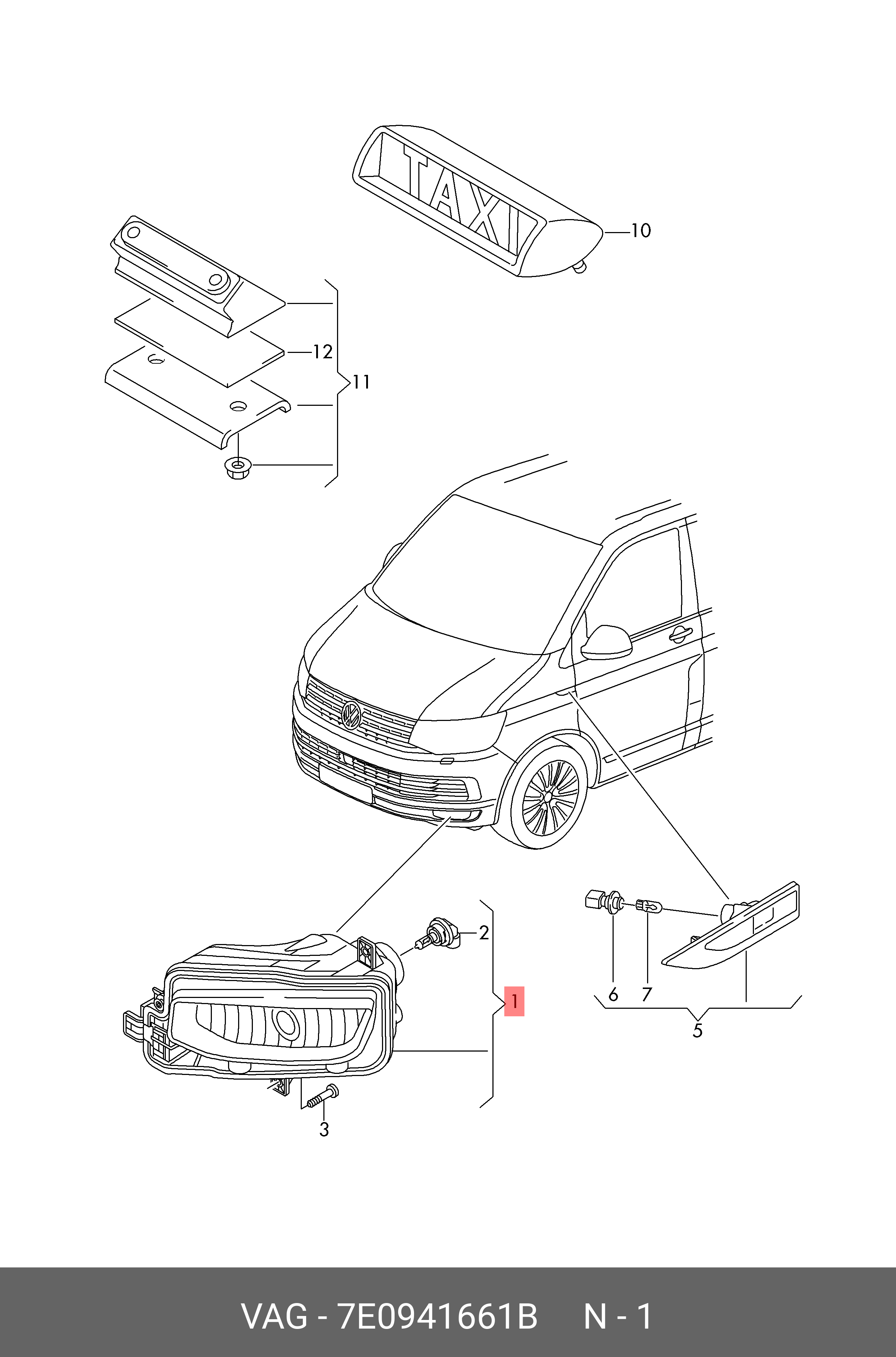 7E0 941 661 B VAG VAG Transporter T6 ПТФ левая